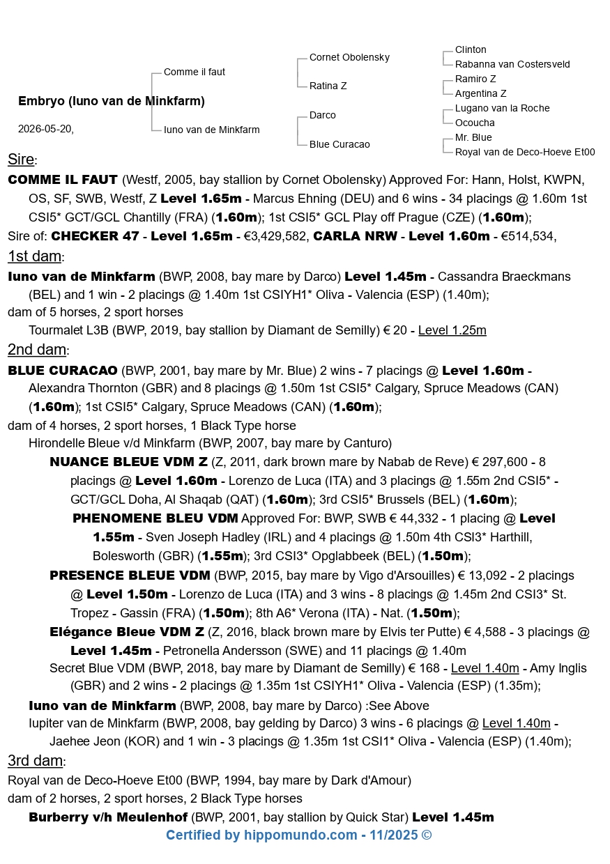 Grâce à nos nombreux contacts et à notre longue expérience, nous pouvons vous garantir que vous trouverez le cheval approprié.