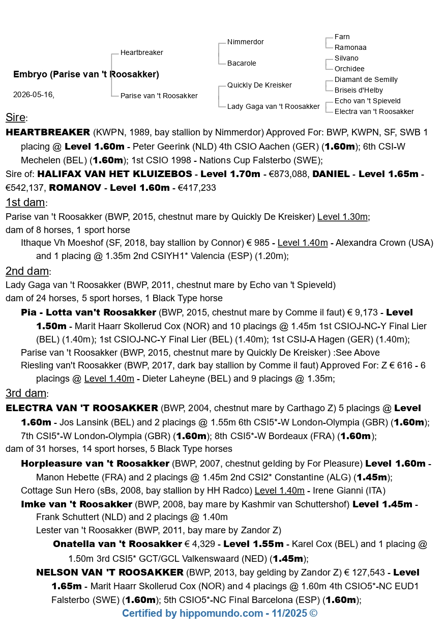 Grâce à nos nombreux contacts et à notre longue expérience, nous pouvons vous garantir que vous trouverez le cheval approprié.